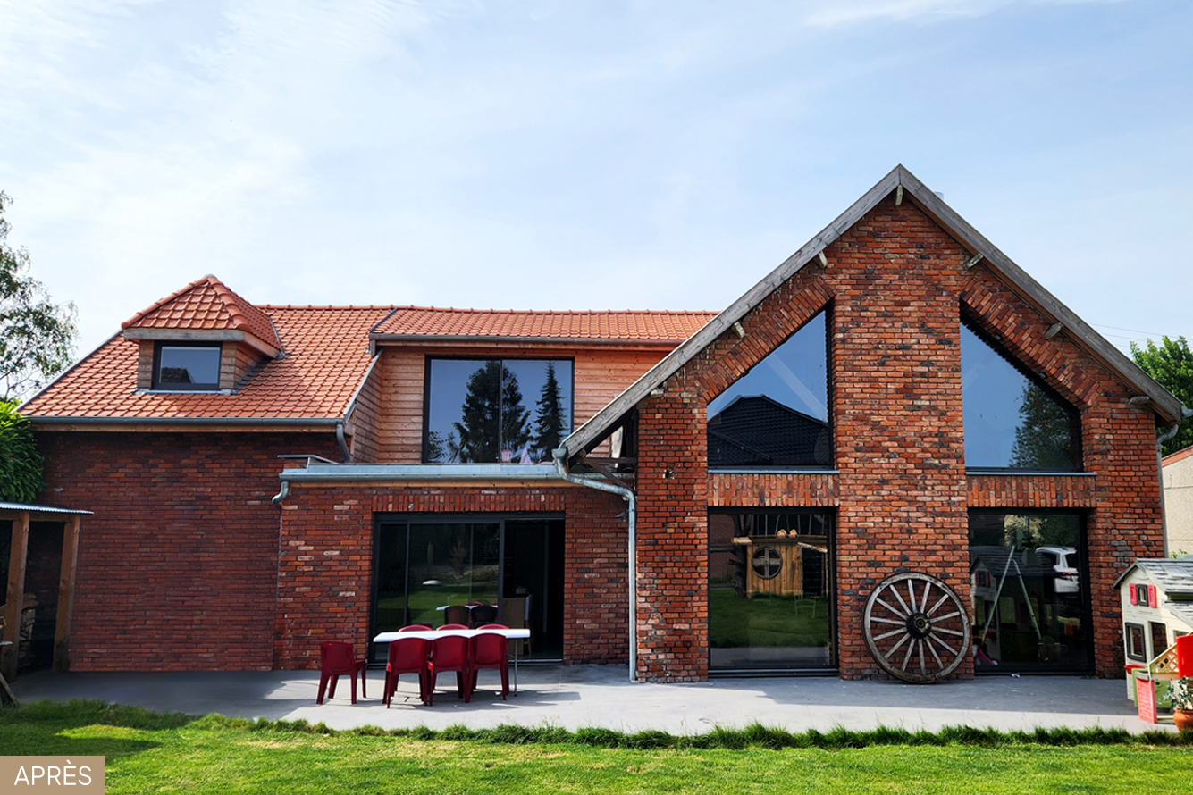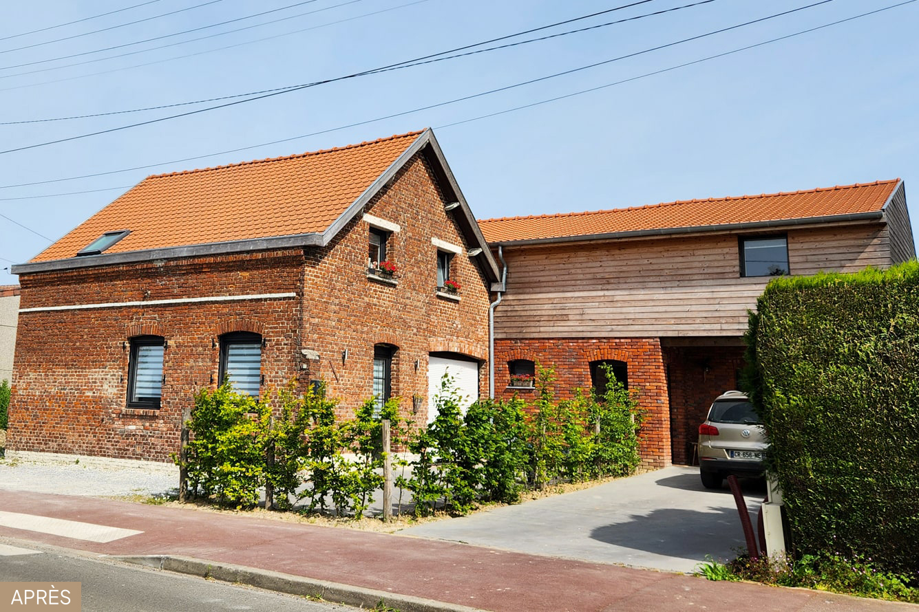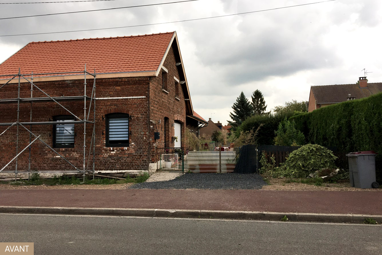 Le projet consiste en la création d’un 2ème logement à la suite de la reconversion et l’extension de la grange attenante au logement existant rue d’Armentières. L’extension perpendiculaire au corps principal vient recréer une cours d’entrée pour les 2 habitations ainsi que des places de stationnement.